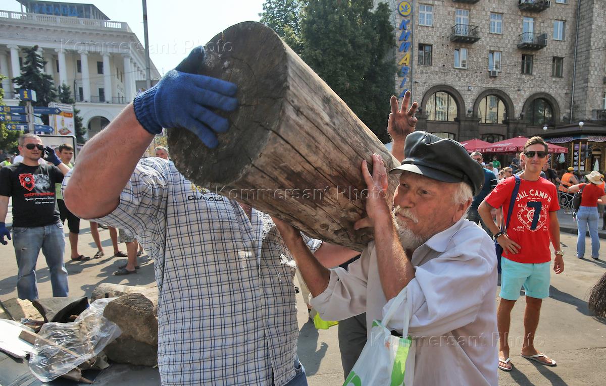 Разборка баррикад на площади независимости (Майдана незалежности).
