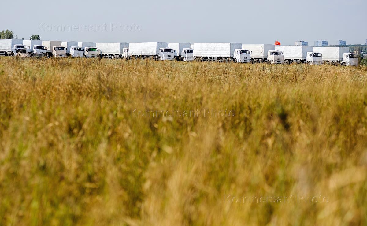 Конвой с гуманитарным грузом для жителей Юго-Восточной Украины на аэропорте "Балтиморе" под Воронежем.