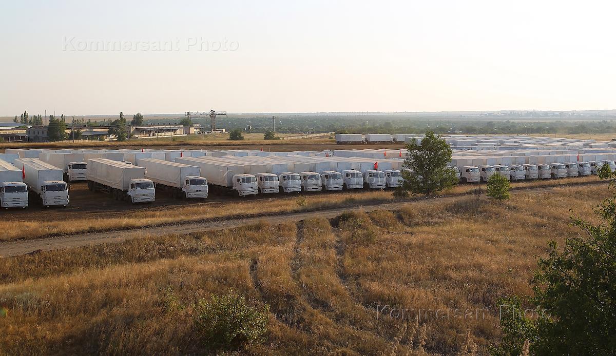 Гуманитарный конвой на границе Ростовской области и Украины.