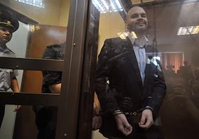 Правосудие Националист Максим Марцинкевич (кличка Тесак), обвиняемый в возбуждении межнациональной вражды через интернет, на оглашении приговора в Кунцевском районном суде.
