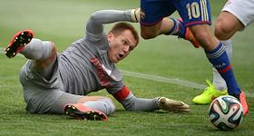 СОГАЗ-Чемпионат России по футболу 2014/15. 4-й тур. Вратарь ФК "Спартак" Артем Ребров во время матча…