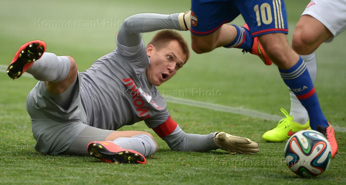 СОГАЗ-Чемпионат России по футболу 2014/15. 4-й тур. Вратарь ФК "Спартак" Артем Ребров во время матча…
