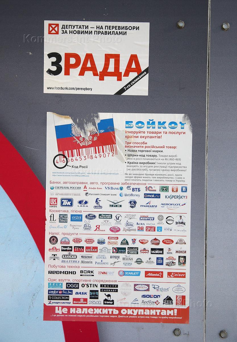 Проблемы российского бизнеса в Украине. Плакат с призывом бойкотировать товары российских…