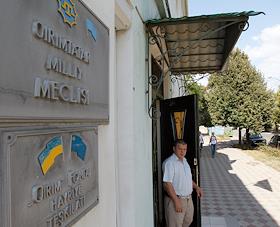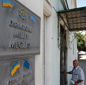 Вывеска на здании Меджлиса крымских татар.