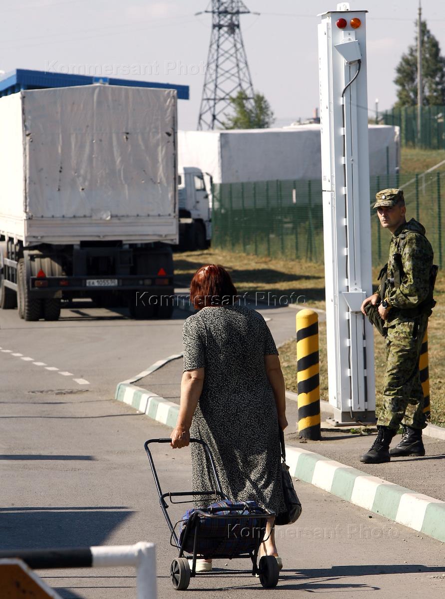Колонна автомобилей "КамАЗ" с гуманитарной помощью для жителей юго-востока Украины на КПП "Донецк".