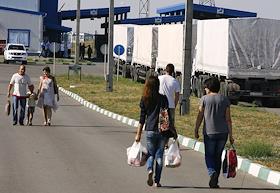 Семья беженцев с юго-востока Украины на КПП "Донецк".