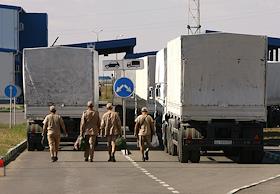 Конвой с гуманитарной помощью для жителей юго-востока Украины на российско-украинской границе.