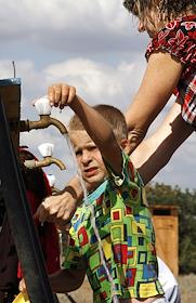Беженцы с Украины в палаточном лагере между Донецком и Каменск-Шахтинским. Женщина моет маленького…