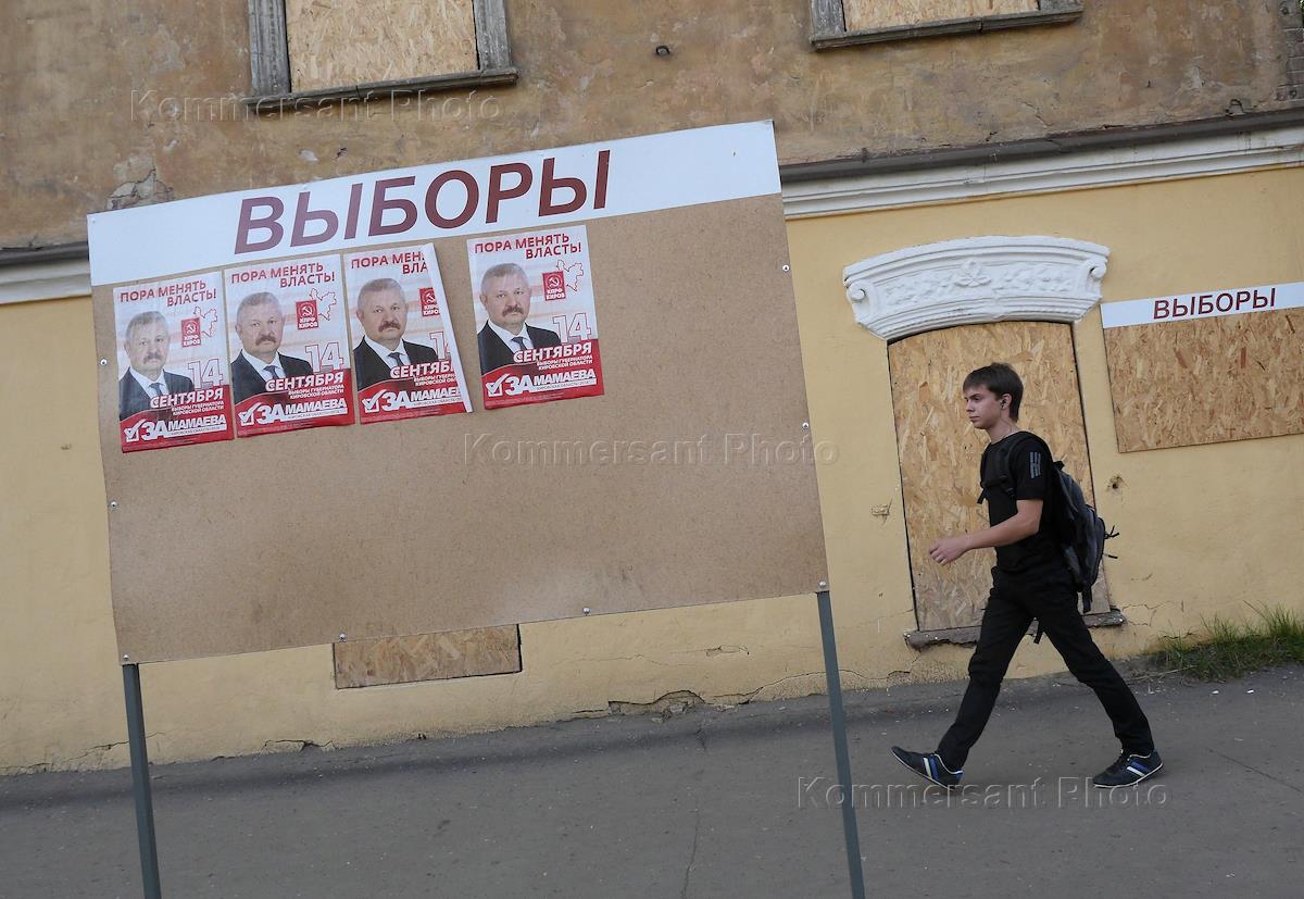 Реклама на улицах города в поддержку кандидатов на пост губернатора Кировской области. Плакат…
