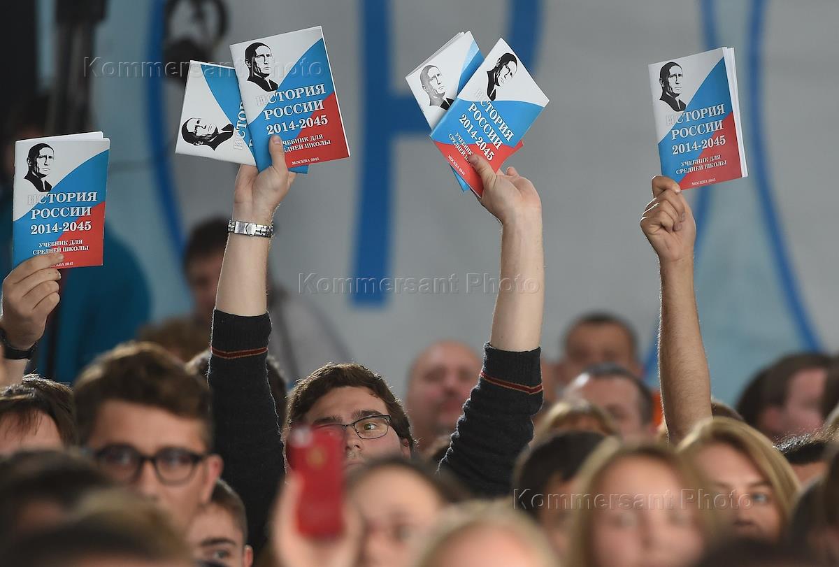 Всероссийский молодежный форум "Селигер". Участники форума во время общения с президентом России…