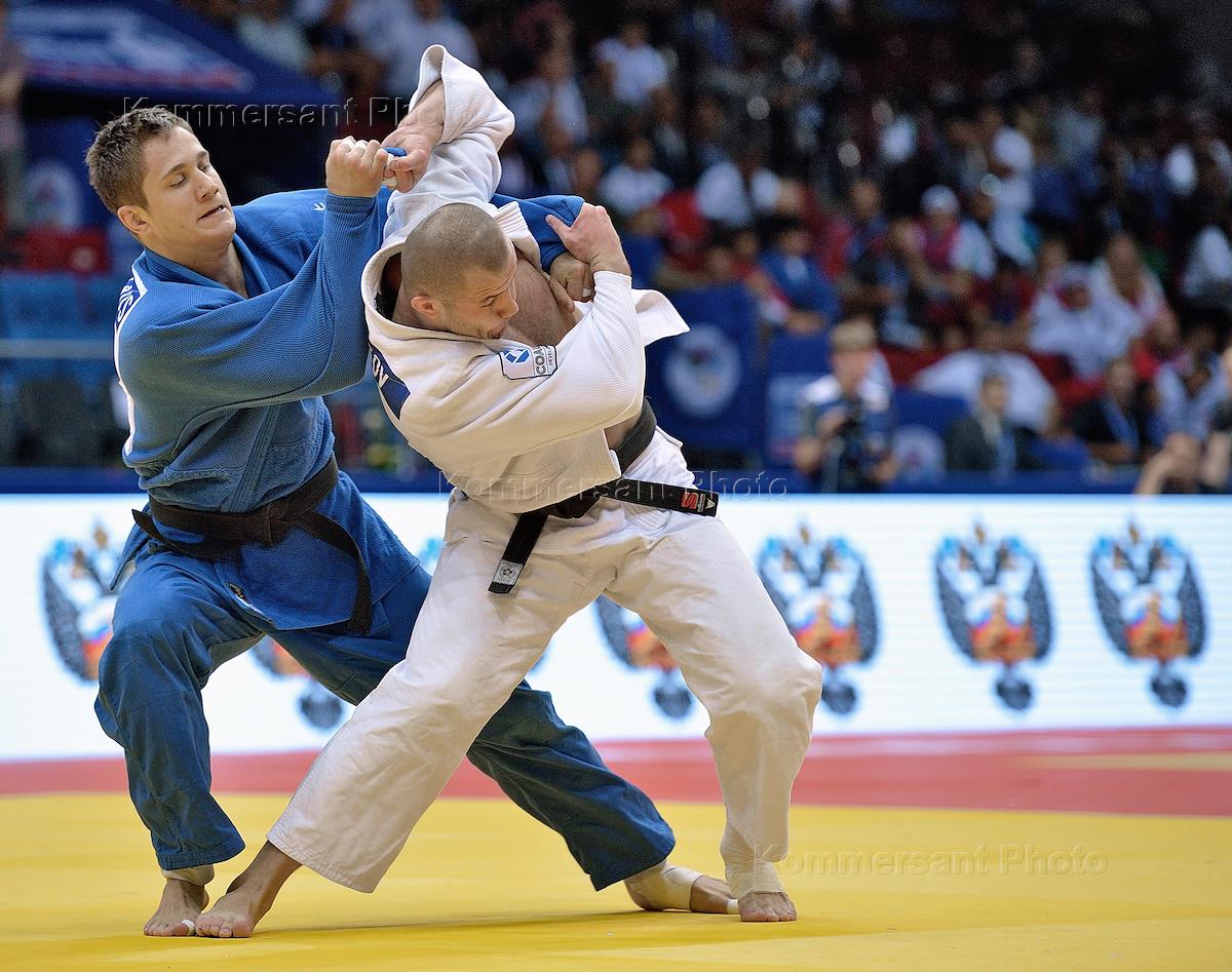Чемпионат мира по дзюдо-2014 в Челябинске. 5 день. Россиянин Кирилл Вопросов во время поединка в весовой категории до 90 кг, завоевавший бронзу.