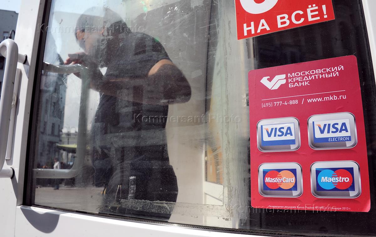 Жанровая фотография. Платежные системы VISA, MasterCard. Наклейка на двери отделения Московского…