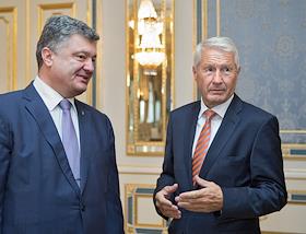 Президент Украины Петр Порошенко (слева) и генеральный секретарем Совета Европы Турбьерн Ягланд…