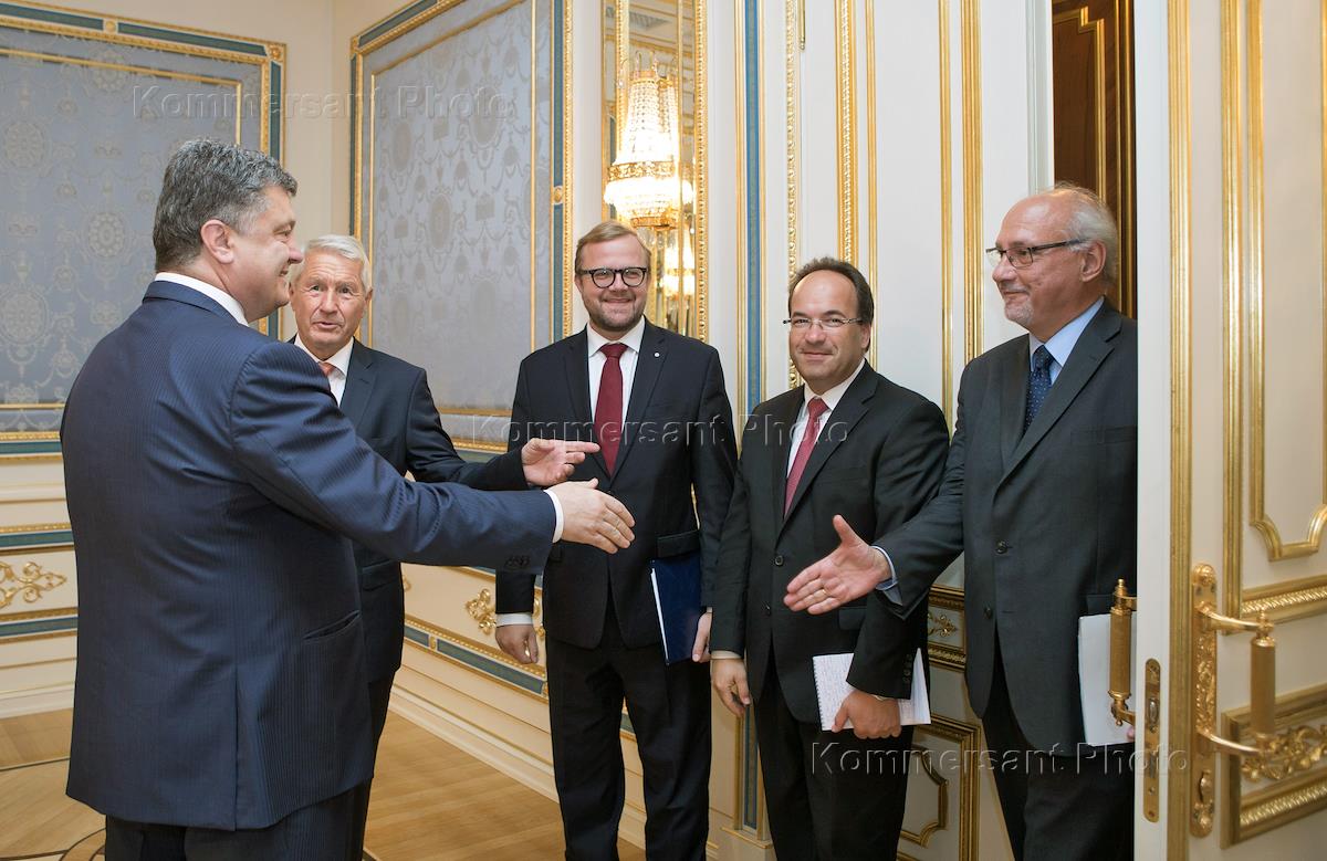 Президент Украины Петр Порошенко во время встречи с Генеральным Секретарем Совета Европы Турбьерном Ягландом, прибывшим в Киев.