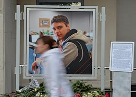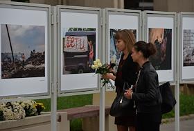 Фотовыставка работ погибшего на Украине фотокорреспондента Андрея Стенина открыта у здания МИА…