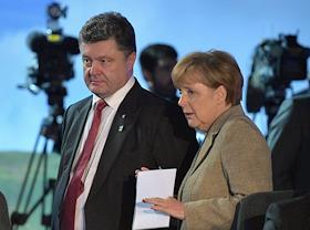 Президент Украины Петр Порошенко (слева) и Федеральный канцлер Германии Ангела Меркель (справа) во…
