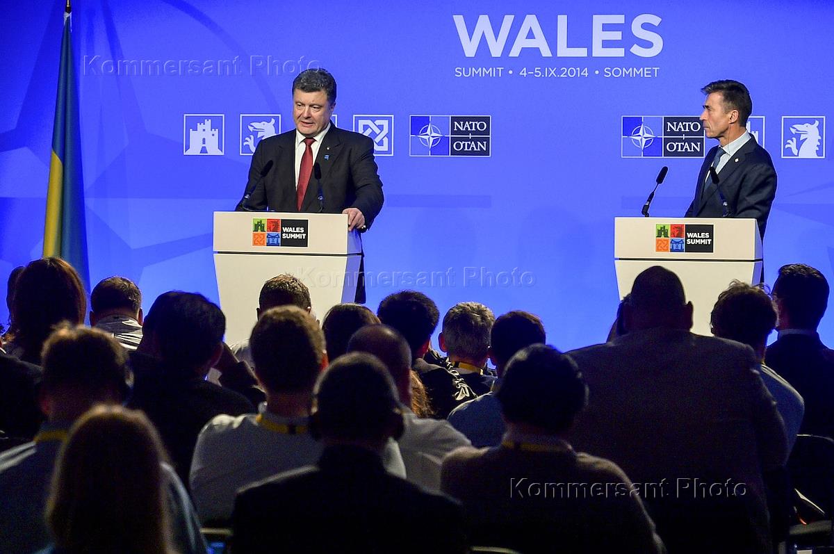 Президент Украины Петр Порошенко и генеральный секретарь НАТО Андерс Фог Расмуссен на саммите стран-участниц Североатлантического альянса.