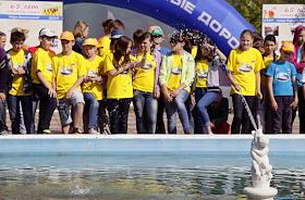 Дети у фонтана во время отдыха в Детском оздоровительном лагере "Старая Руза".