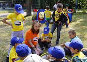 Дети на спортивной площадке во время отдыха в Детском оздоровительном лагере "Старая Руза".