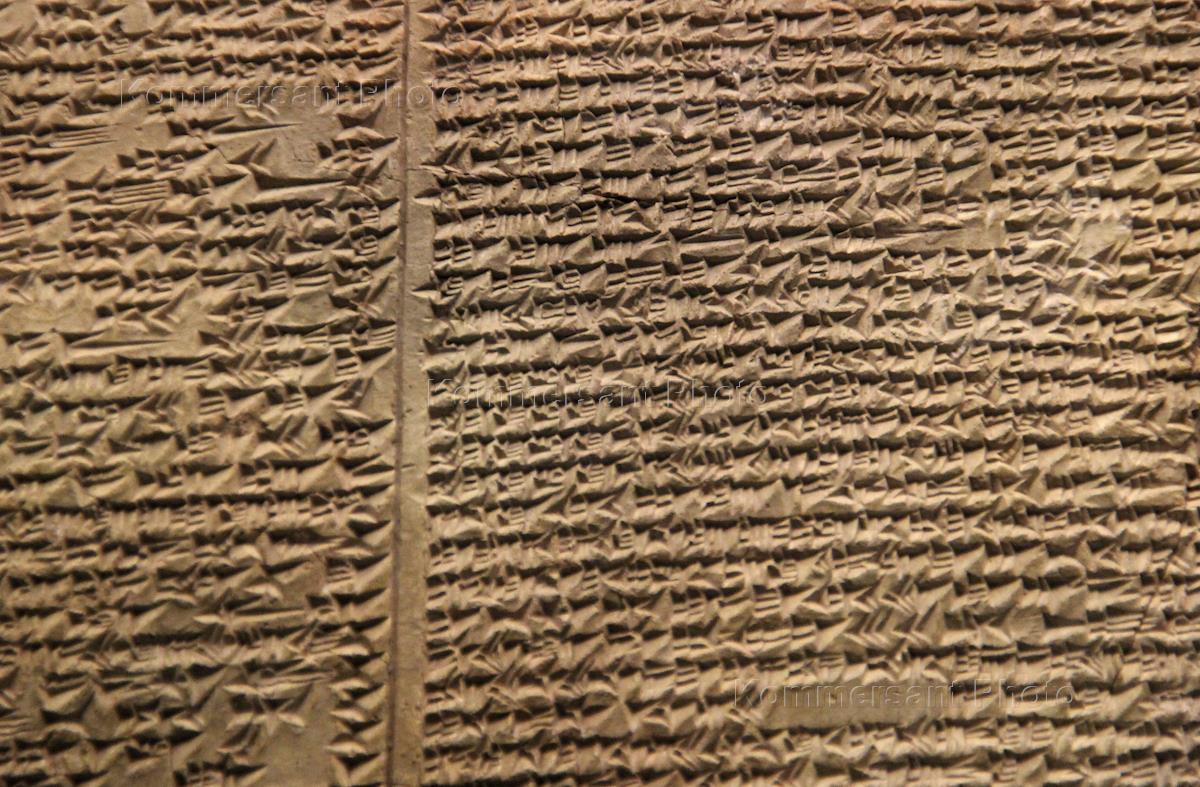 Британский музей. Один из экспонатов музея. Табличка с клинописью.