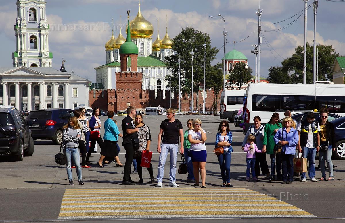 Виды города Тула. Предвыборный плакат партии "Единая Россия" на улице города.