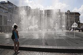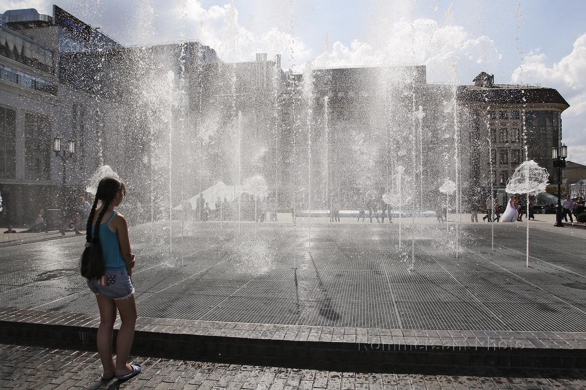 Виды Тулы. Танцующий фонтан перед Дворцом Бракосочетания, на центральной площади города. Дети играют…