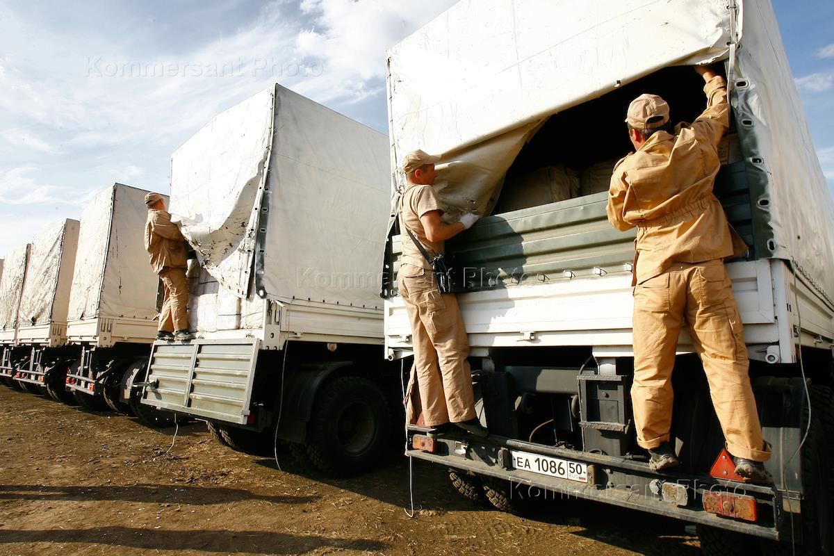 Загрузка второй партии груза гуманитарной помощи для юго-востока Украины.