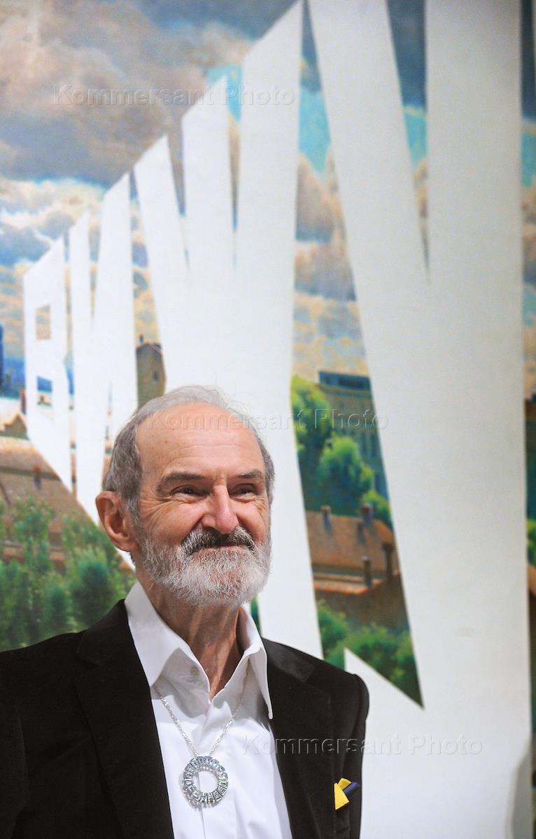 Художник Эрик Булатов на церемонии открытия своей выставки "ЖИВУ – ВИЖУ" в Центральном выставочном…