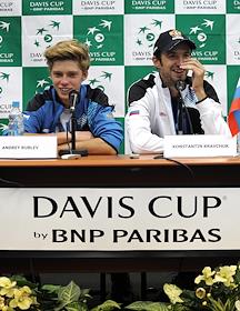 Второй день теннисного матча Кубка Дэвиса 1-ой группы Россия - Португалия. Российские теннисисты…
