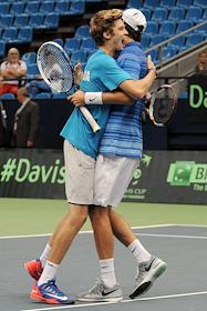 Спорт Второй день теннисного матча Кубка Дэвиса 1-ой группы Россия - Португалия. В парной встрече определился победитель - команда России. За команду России выступили дебютант команды Андрей Рублев и Константин Кравчук.