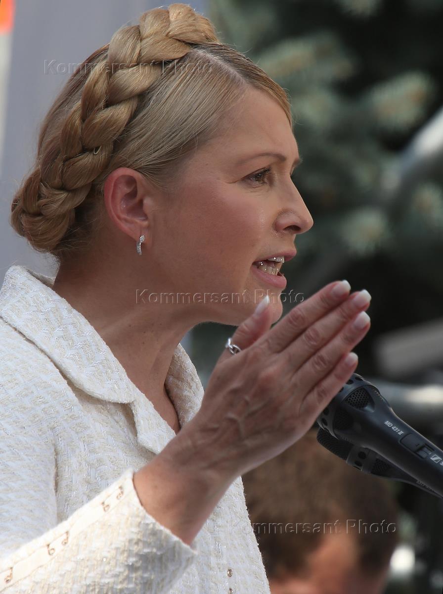 Лидер партии "Батькивщина", бывший премьер-министр Украины Юлия Тимошенко (в центре) во время…