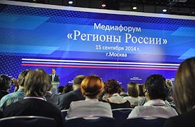 Председатель Всероссийской политической партии "Единая Россия", председатель Правительства России Дмитрий Медведев на Всероссийском медиафоруме "Регионы России".