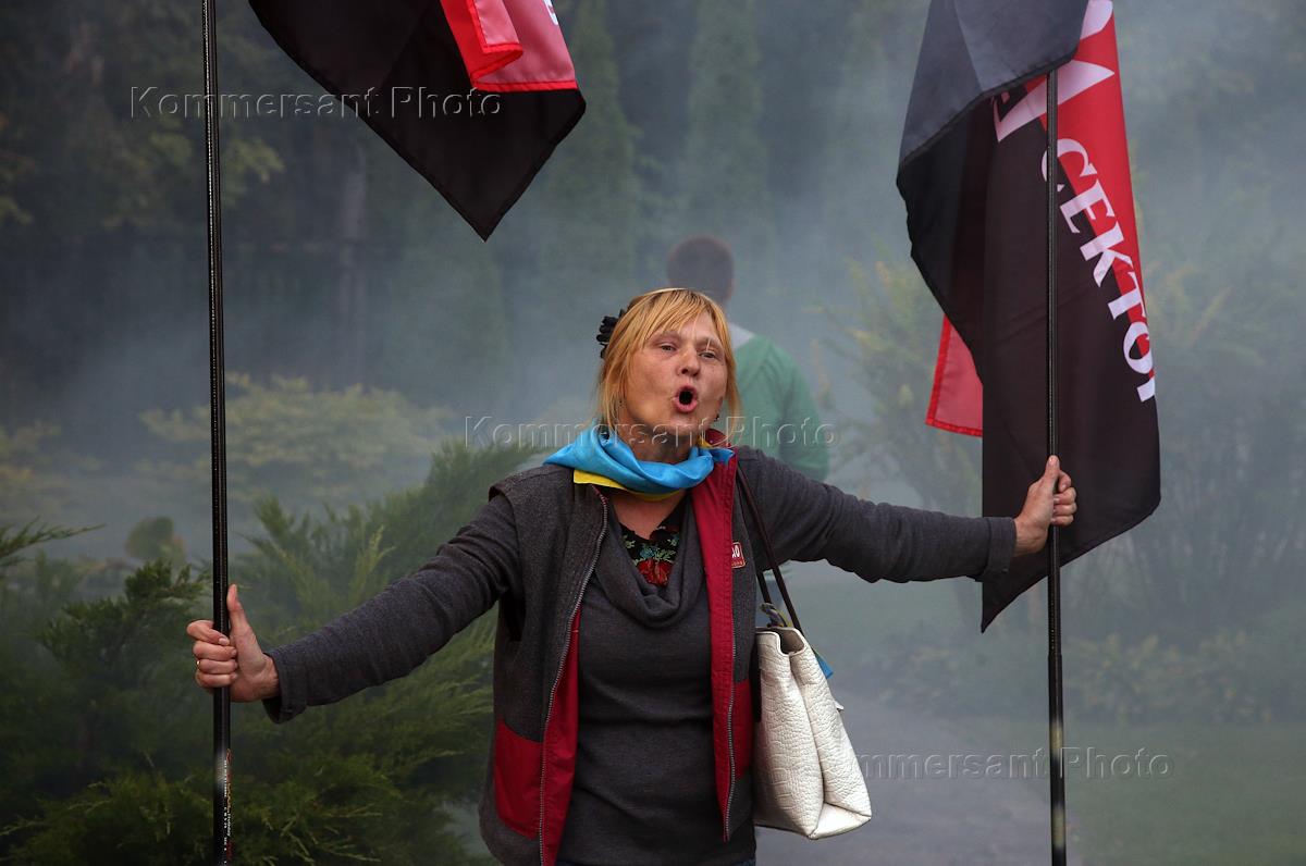 Политика Активисты "Правого сектора" во время митинга в поддержку принятия законопроекта о люстрации органов госвласти. Митинг прошел около здания Верховной Рады Украины.
