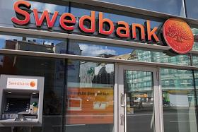 Жанровая фотография. Здание с логотипом Swedbank (Сведбанк) в Риге.