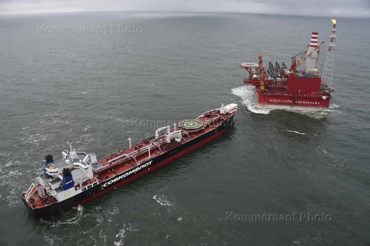 Стационарная платформа "Приразломная", установленная на Приразломном нефтяном месторождении, которое…