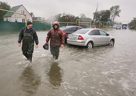 Подтопление после урагана нескольких поселков в Азовском районе Ростовской области.