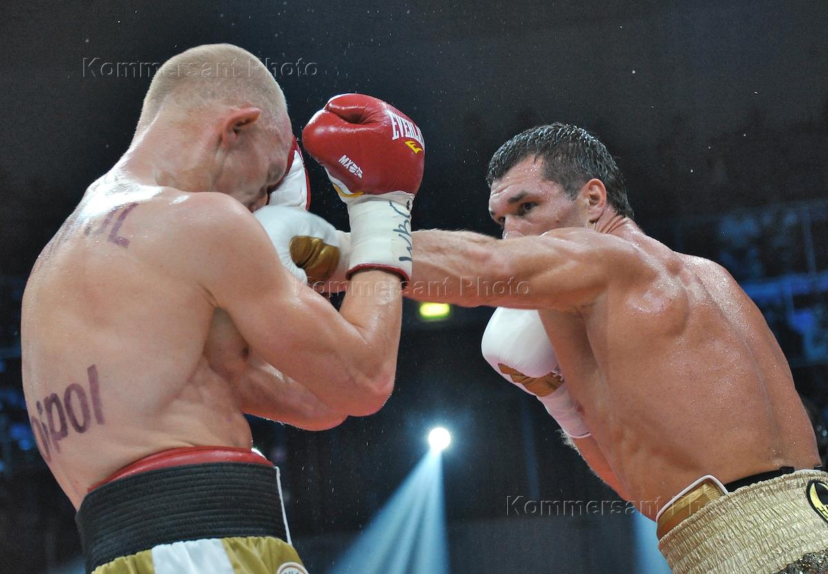 Российский боксер Денис Лебедев (справа) в поединке за звание чемпиона мира по версии WBA против…