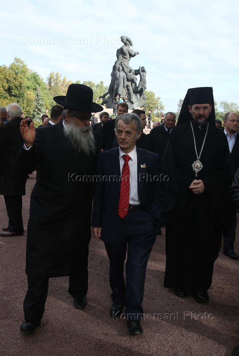Общество Народный депутат Верховной Рады Украины VII созыва (Батькивщина), уполномоченный президента Украины по делам крымскотатарского народа Мустафа Джемилев возле памятника жертвам расстрелов киевлян 1941-1943 годов в Бабьем Яру.