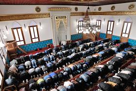 Мусульманский праздник жертвоприношения Курбан-Байрам. Праздничный намаз в мечети в селе Изобильное.
