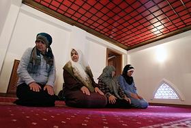 Мусульманский праздник жертвоприношения Курбан-Байрам. Верующие женщины во время праздничного намаза…
