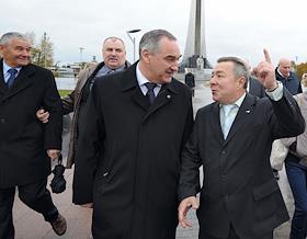 Открытие Всемирной недели космоса 2014. Слева направо: космонавт Александр Скворцов, руководитель…