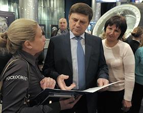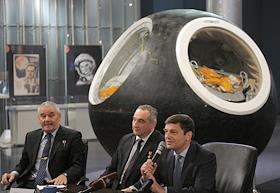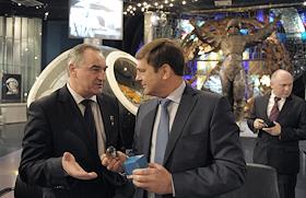 Наука Открытие Всемирной недели космоса 2014. П/к руководителя Федерального космического агентства Олега Остапенко, и экипажа МКС 39/40: космонавтов Александра Скворцова и Олега Артемьева,в Музее космонавтики.