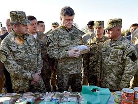 Президент Украины - верховный главнокомандующий Вооруженных сил Украины Петр Порошенко (в центре) во…