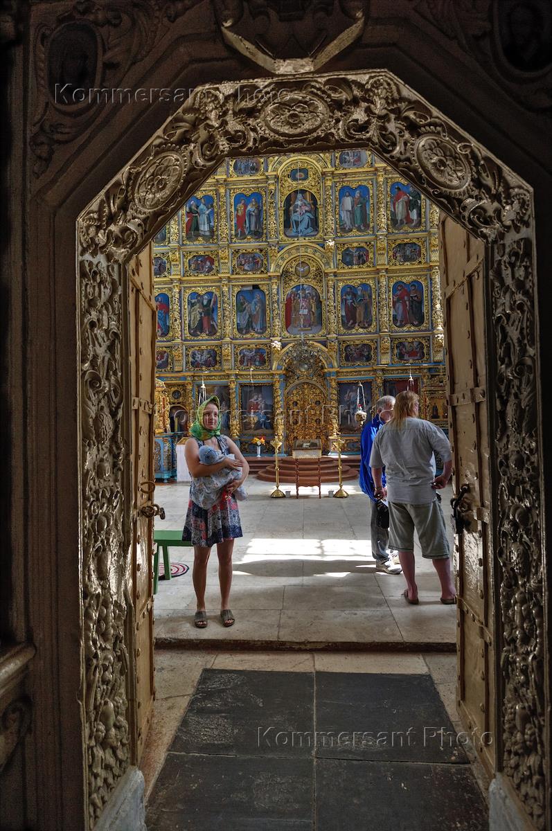 Прихожане у иконостаса Введенского собора (Собор Введения во храм Пресвятой Богородицы) в…