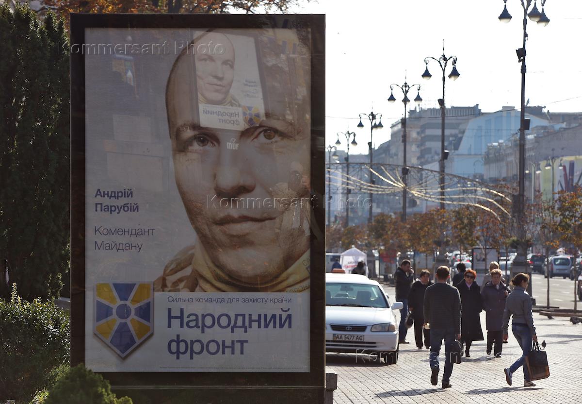 Виды Киева. Предвыборная агитация Народного фронта на Крещатике.