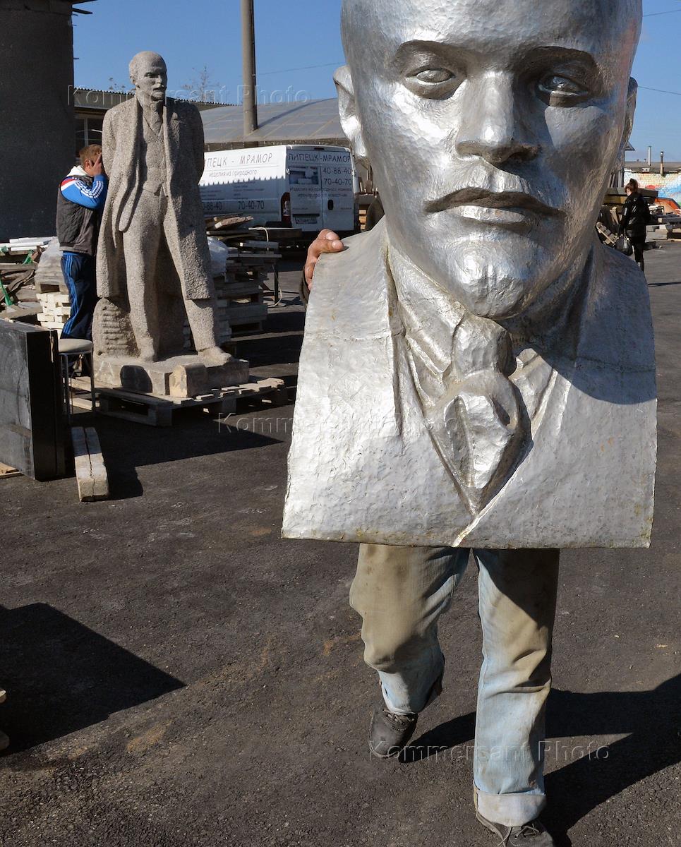 Жанровая фотография. Бюст В. Ленина разной величины, памятник В.И.Ленину в полный рост.