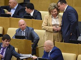 Пленарное заседание Госдумы России. Слева направо: первый заместитель председателя комитета…