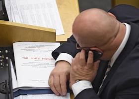 Пленарное заседание Государственной думы России. Брошюра на столе депутата "Так жить нельзя".