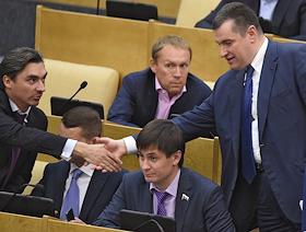 Пленарное заседание Госдумы России. Слева направо: член комитета Государственной думы (ГД) России по…