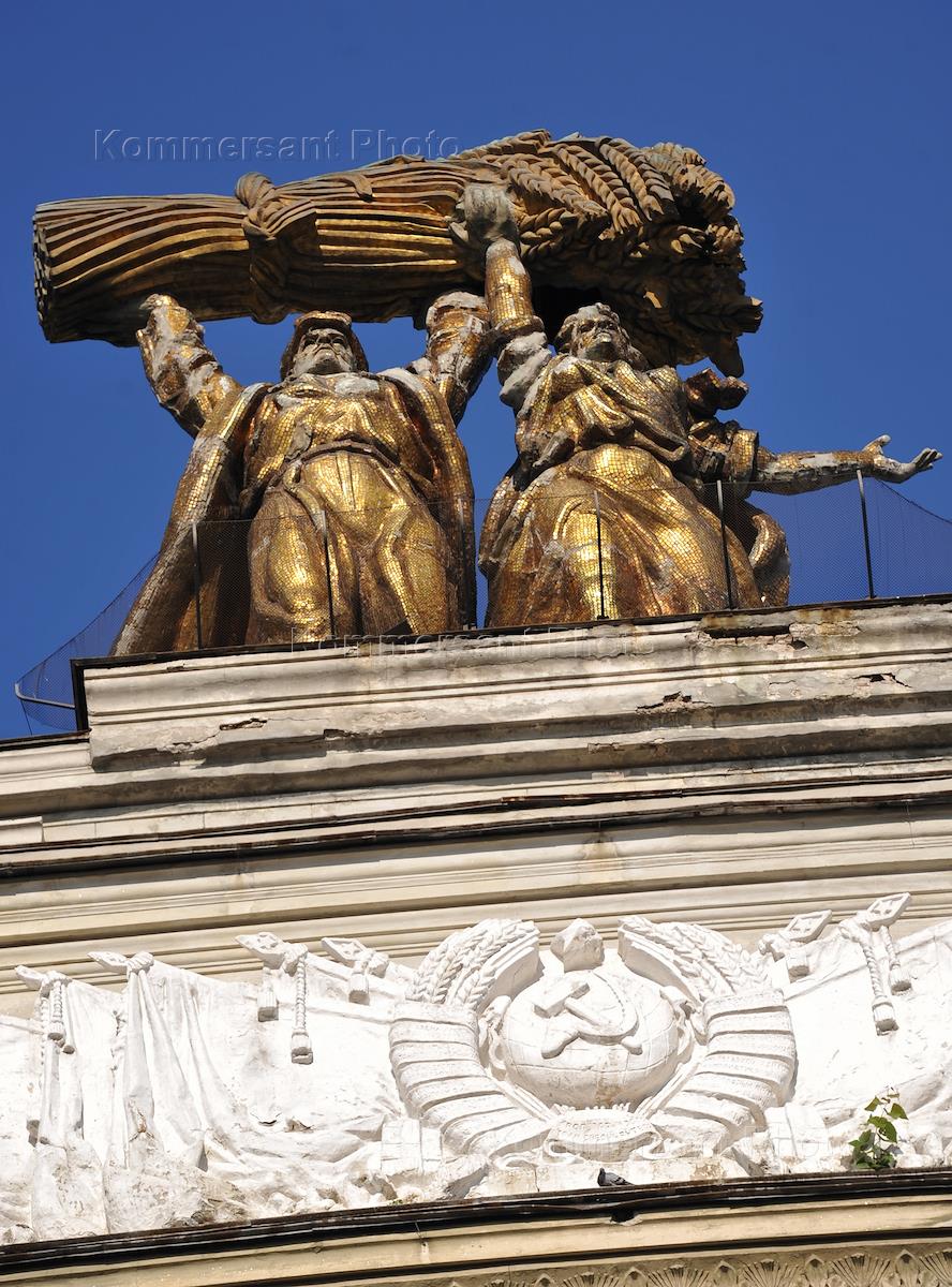 Виды ВДНХ. Скульптура на арке главного входа.